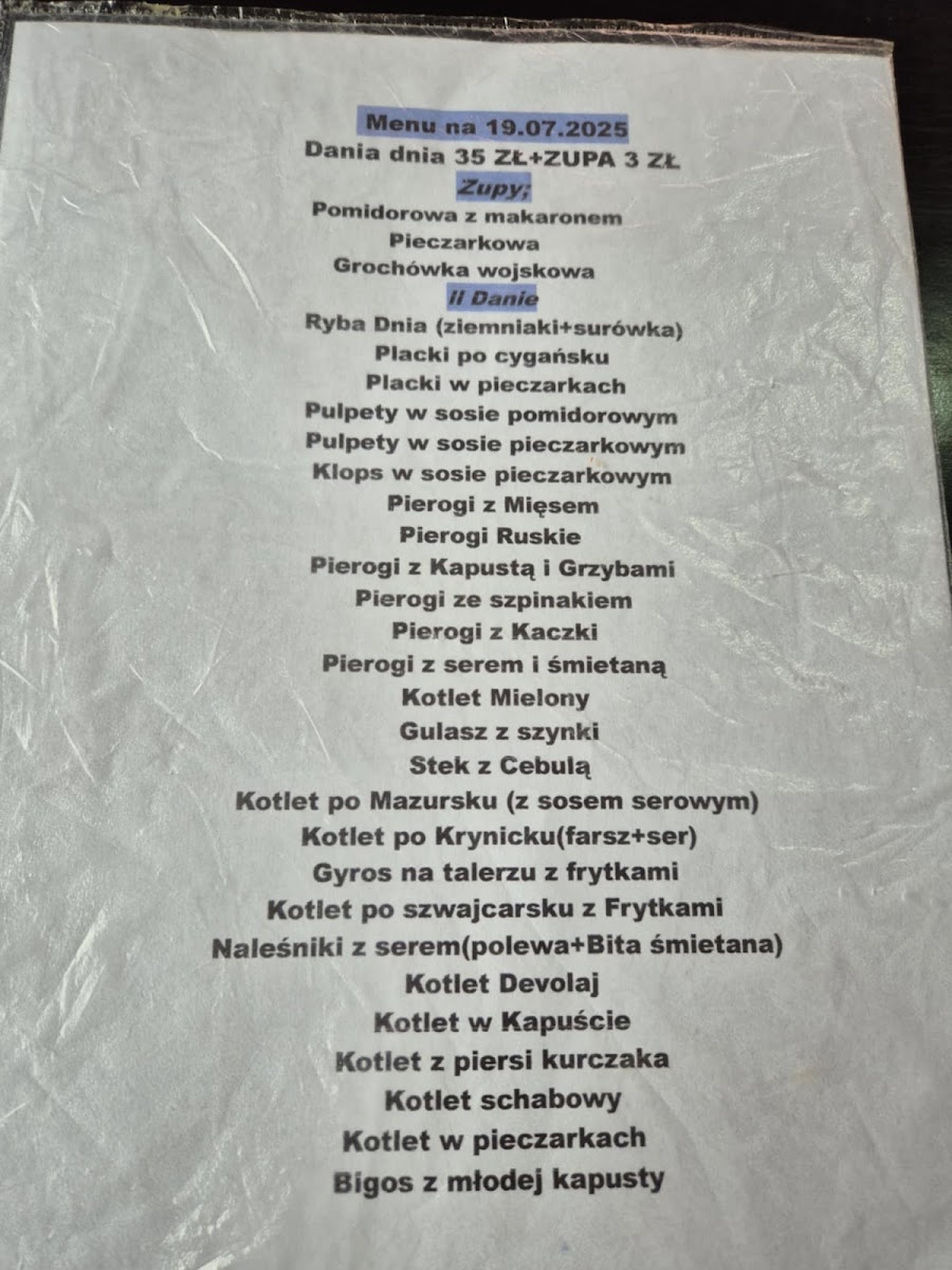 Value for Money: Diners rave about the affordability, with substantial main courses priced at around 35 zł and optional soups for just 3 zł.